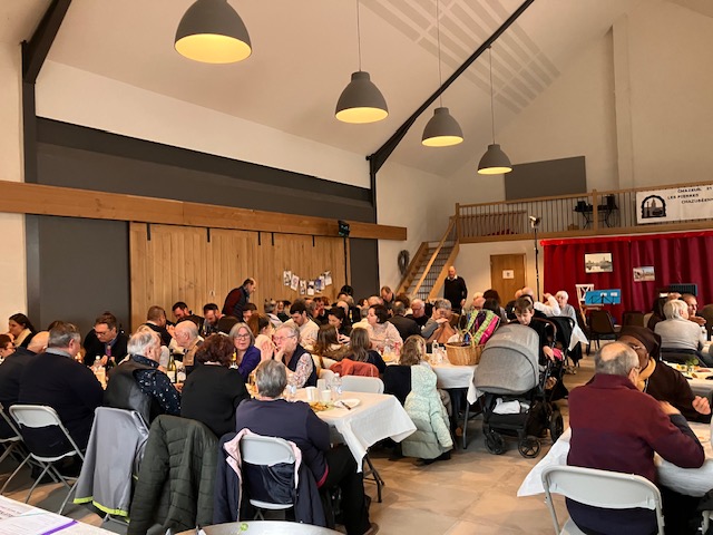 À l’issue de la célébration, les participants se sont retrouvés à l’orangerie du château autour d’un stand gourmand puis d’un repas de l’Avent préparé et servi par les bénévoles de l’association. Un véritable moment convivial autour d’un menu apprécié de tous, dans une ambiance chaleureuse et festive.