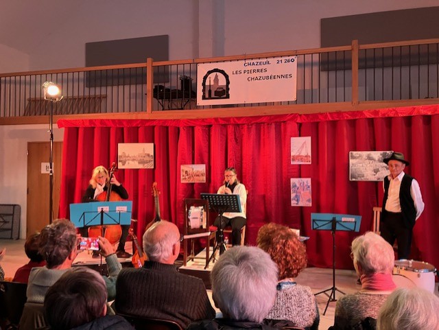L’après-midi s’est poursuivi par le spectacle « Les Enfants de Carriers », proposé gratuitement au public. Ce moment fort a permis de replonger dans la vie des ouvriers des carrières de Saint-Germain-de-Modéon à la fin du XIXᵉ siècle. À travers les récits, les chants et les musiques traditionnelles du Morvan, interprétés par André Beuchot, Évelyne Peudon et Anne Sylvestre, les paveurs, tailleurs de pierre et épinceurs ont repris vie, offrant au public un voyage émouvant au cœur de notre patrimoine local.